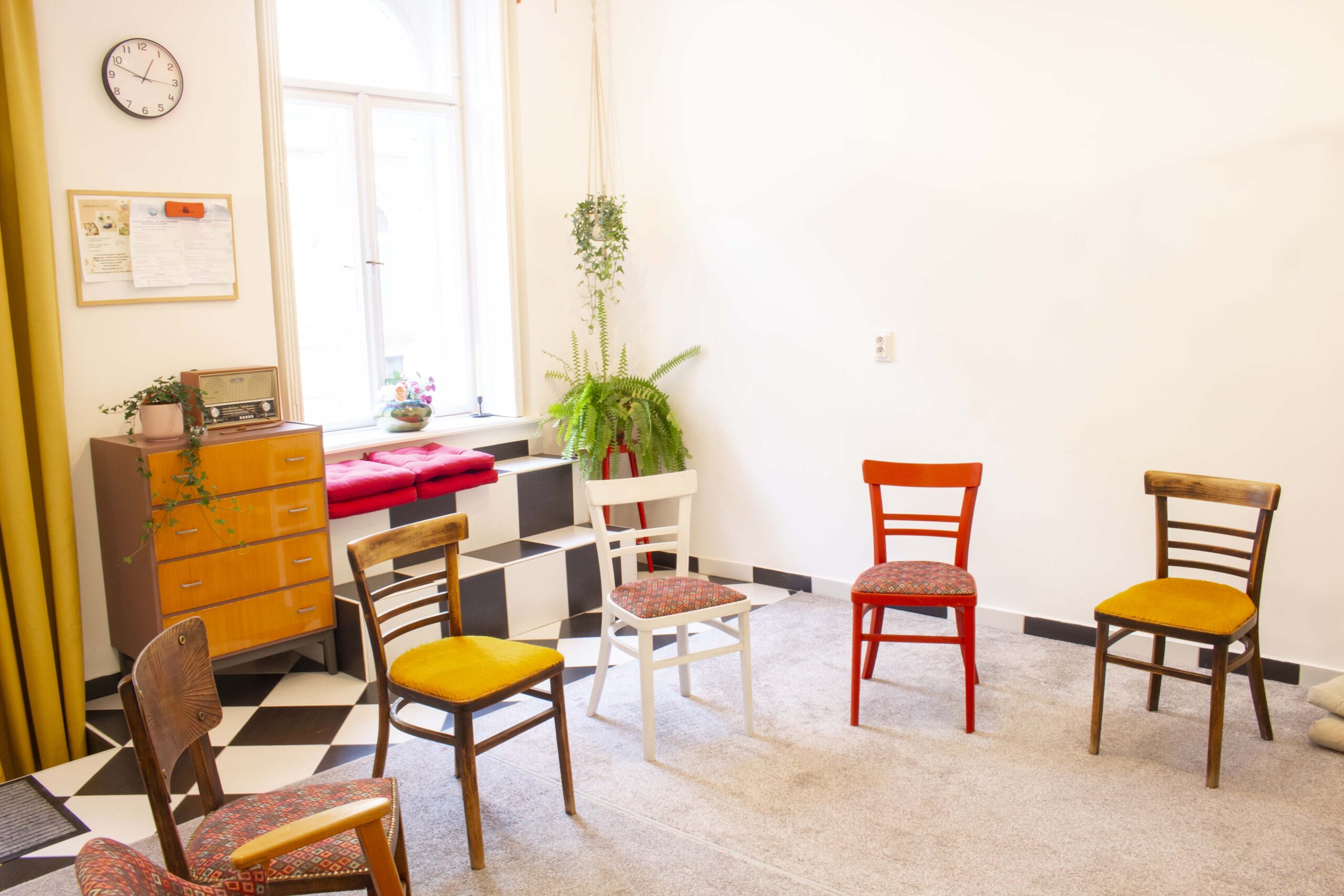 Egyéni terápiák, kiscsoportos foglalkozások megtartására alkalmas kedves kis tér kissé retro hangulatban.